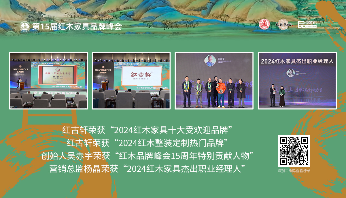 禮遇千年前的中國智慧 格物致知 修身齊家 走進紅古軒 一廿間,二十八載。28年,跨越時代進入新紀元;28年,待時乘勢,根深葉茂;28年,讓新中式成為時代。 創(chuàng)始人故事 1997年創(chuàng)立紅古軒,2002年在紅木行業(yè)提出“新中式紅木家具”。如今,紅古軒以富于藝術創(chuàng)造的產(chǎn)品與文化引領紅木家具發(fā)展... 品牌故事 品牌榮耀 品牌歷程 人物故事